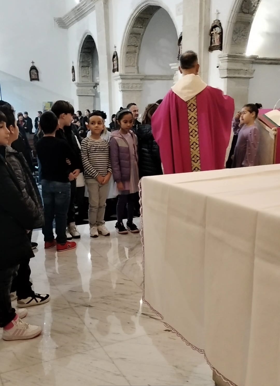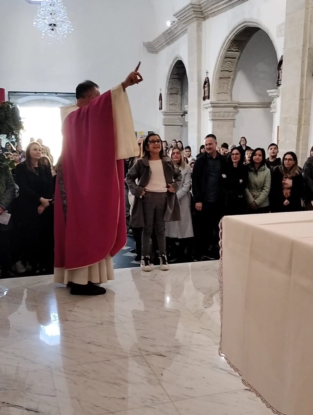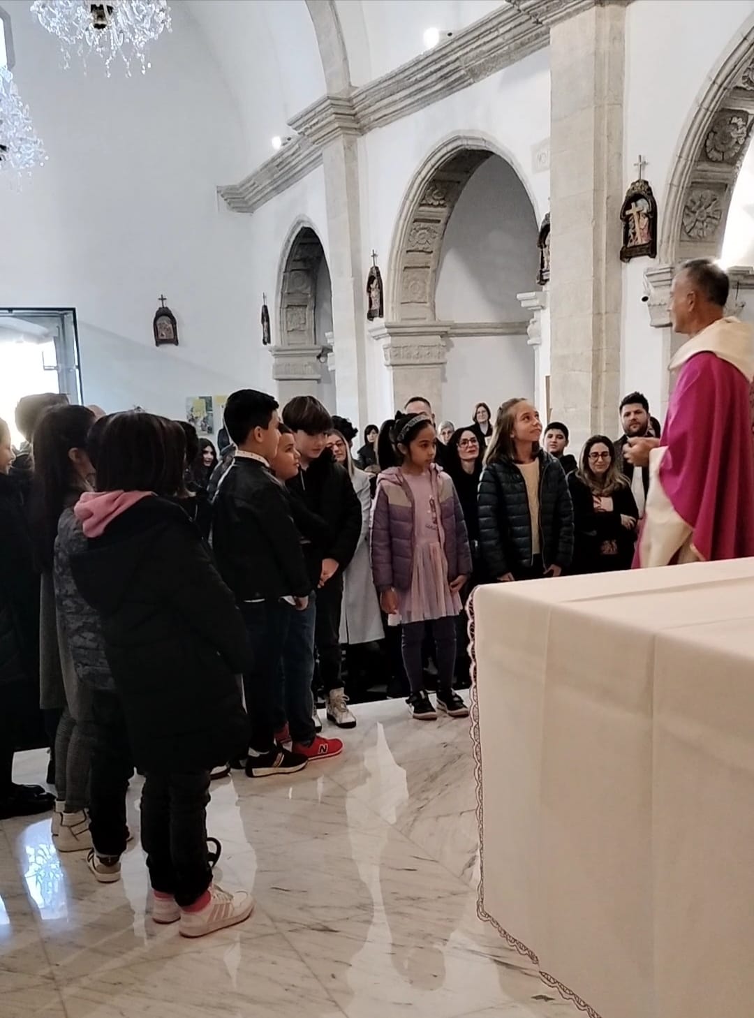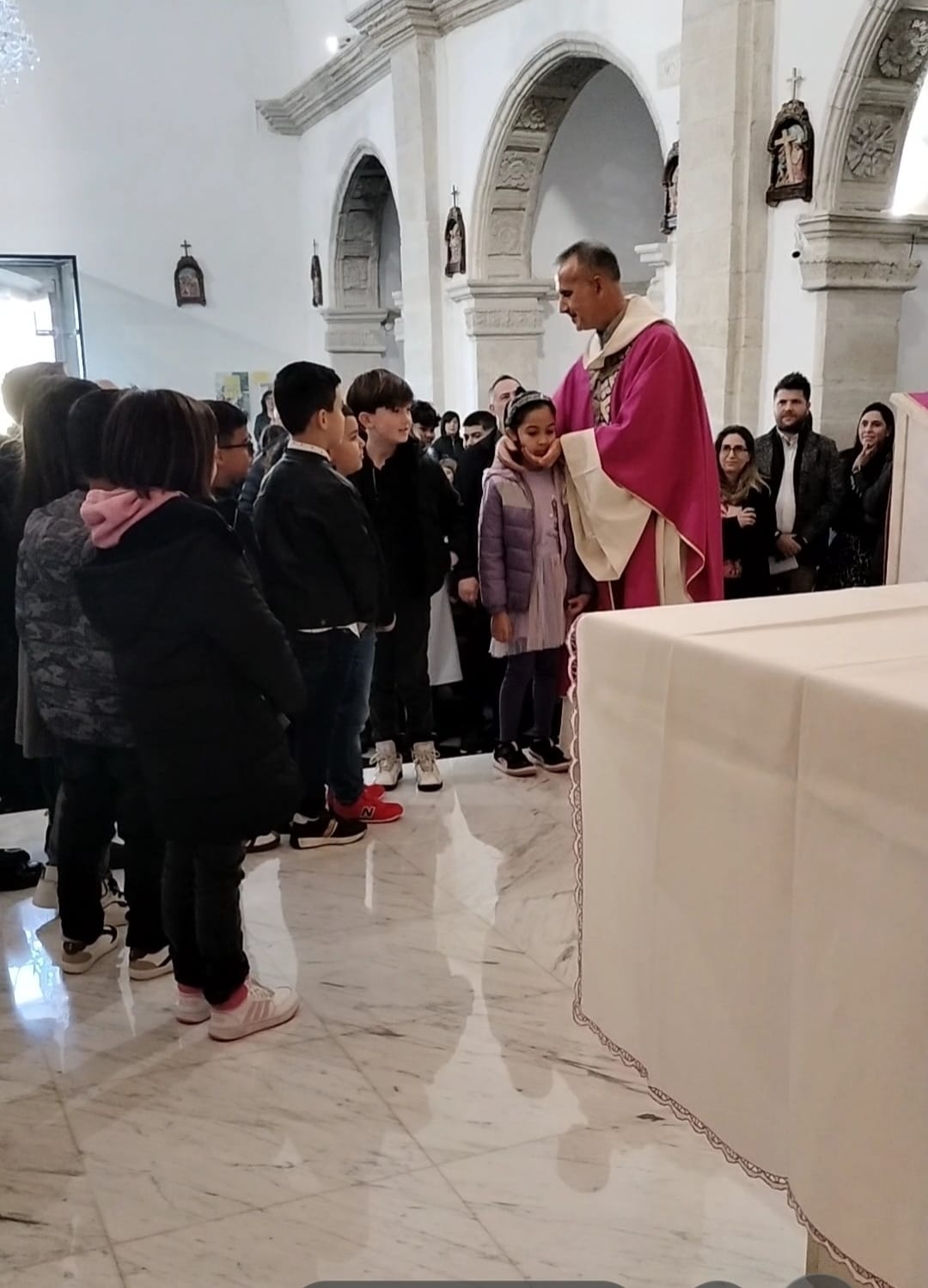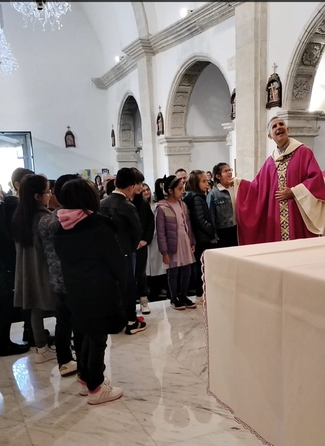 Significativa anche la chiamata dei bambini da parte dei loro genitori e la risposta degli stessi bambini che, volgendo lo sguardo verso il crocefisso, hanno esclamato: “eccomi a te Gesù“.