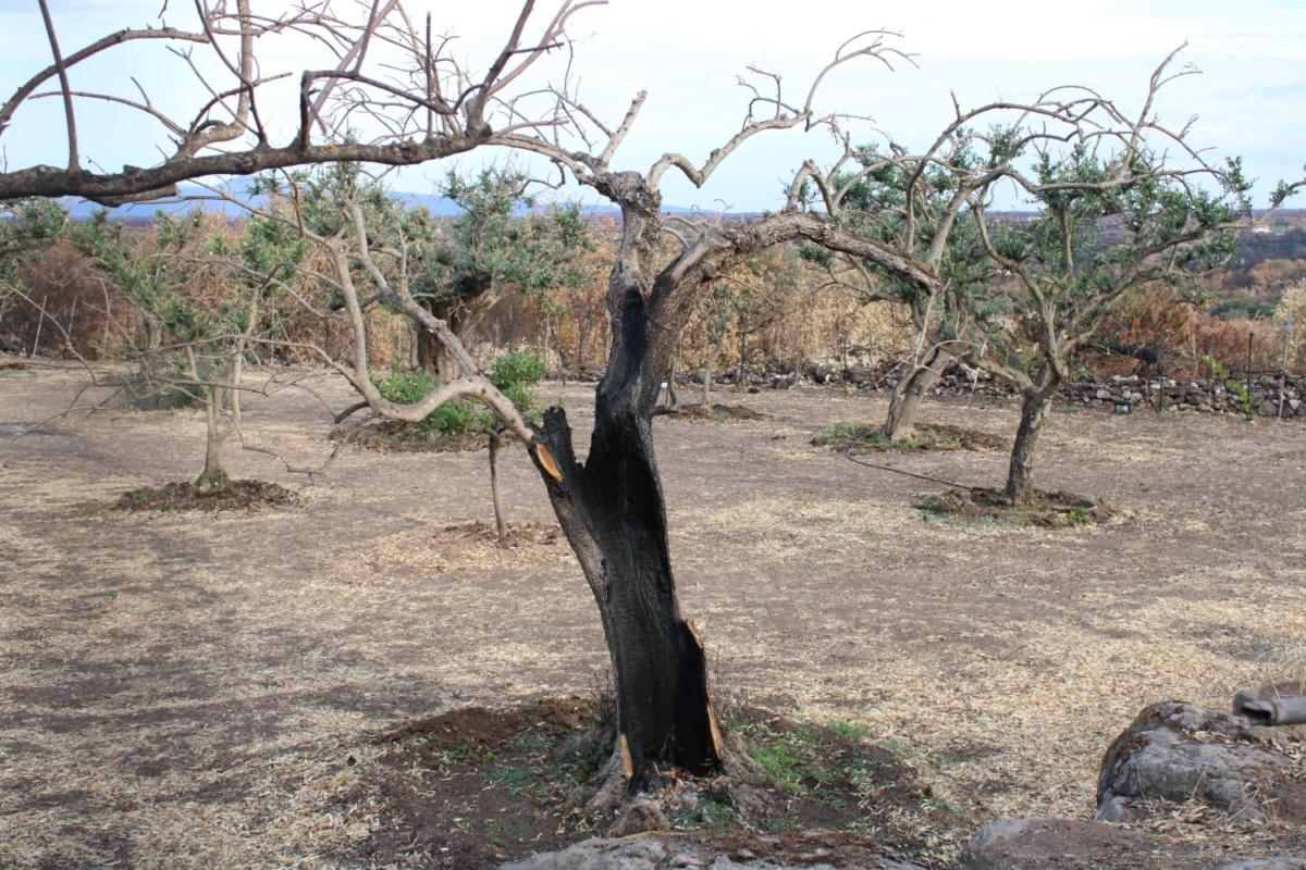 Abbiamo visto Cuglieri e tutta la vallata dai resti di un antico castello (per raggiungerlo abbiamo fatto 300 gradini), ma intorno tutto è distrutto: il fuoco è arrivato sin dentro il paese bruciando case e uliveti. Anche per il “Patriarca”, il “Grande Saggio” come viene chiamato, non c’è stato scampo. Era un ulivo maestoso. Aveva un tronco dal diametro di 10 metri e un’altezza di 16 e ora è completamente bruciato, raso al suolo, distrutto e i suoi rami, grossi come tronchi, che prima reggevano la chioma, ora si sono arresi, caduti a terra, vinti dalla forza del fuoco.