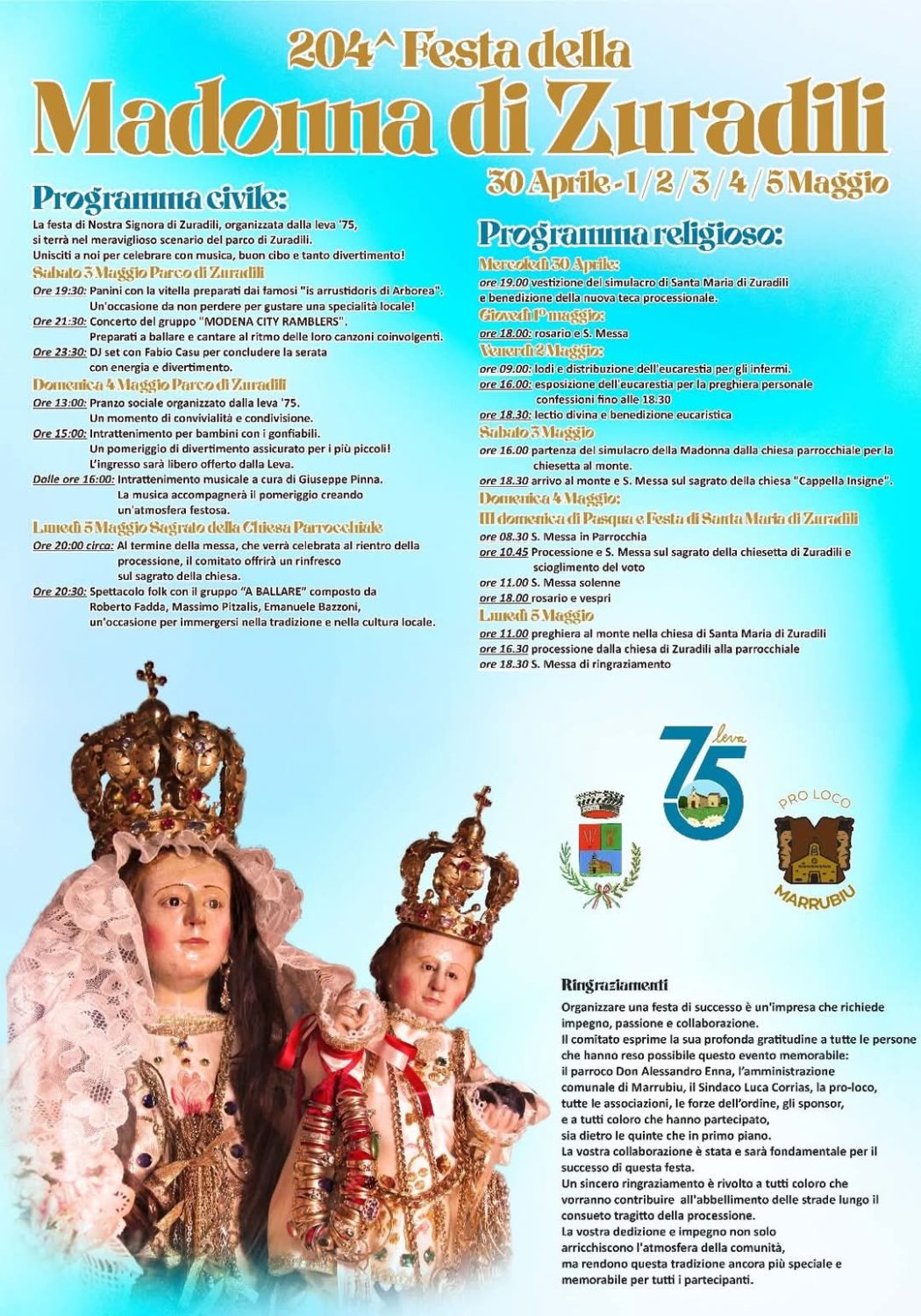 Ancora oggi, ogni prima domenica di maggio, sciogliamo il voto alla Vergine di Zuradili e tutti coloro che a Marrubiu si riconoscono credenti, in questo importante appuntamento annuale, lodano e ringraziano Dio per avere come patrona Maria, invocata come: Santa Maria di Zuradili/Vergine di Montserrat (Santa Mariedda). Proprio la nostra Parrocchia, posta sotto il particolare patrocinio di Maria e invocata con questi titoli, ha conosciuto dalla prova un nuovo esodo, una nuova rinascita.